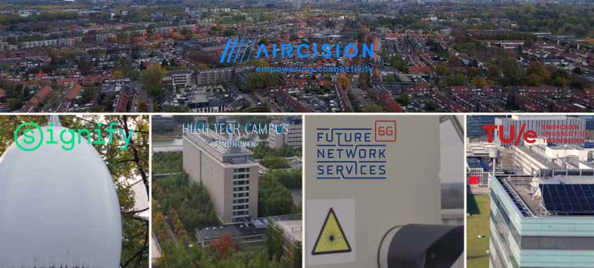 Aircision and partners run a multi technology live demo that established a 5 km wireless connection across Eindhoven, from a TU/e building to High Tech Campus Eindhoven.